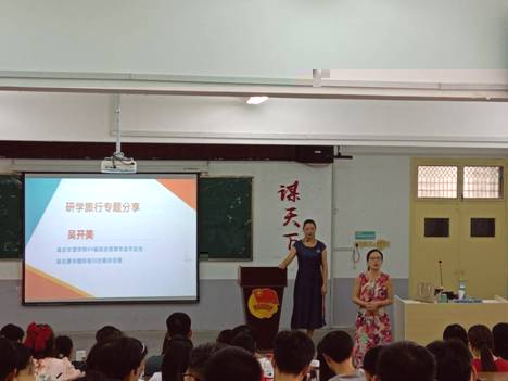 活動開始,龍雨萍老師向同學們介紹了襄陽康華國際旅行社副總經理吳開美的相關情況。吳開美為我系2009屆旅遊管理專業的優秀畢業生,是我院優秀校友代表。吳開美副總經理向同學們講解了研學旅行的發展前景及襄陽市研學旅行發展現狀。接着,以個人成長經曆為例和同學們交流如何做好個人的職業生涯發展規劃。