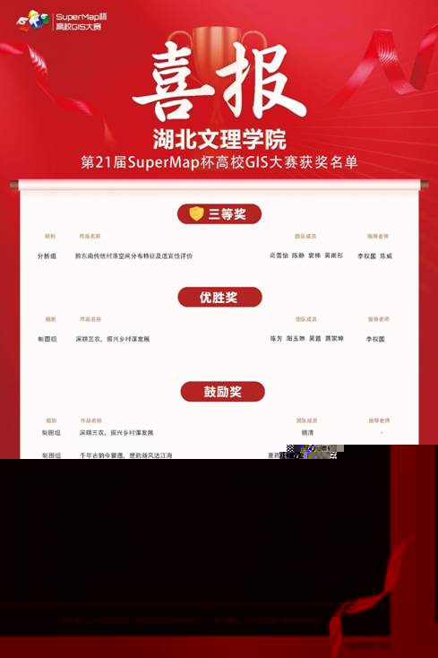 (通訊員李權國)近日,超圖集團向我院發來喜報,祝賀我校在2023年第21屆SuperMap杯高校GIS大賽中取得佳績。