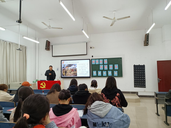 黨課伊始,楊霄書記向我們闡述了為什麼要學習黨的曆史以及如何學習黨史,楊霄指出,學黨史,即知興替、知源頭、感黨恩、明未來、銘責任,并引用了習近平總書記發表的重要講話:“全黨同志要做到學史明理、學史增信、學史崇德、學史力行,學黨史、悟思想、辦實事、開新局”。然後,楊霄談到,中國共産黨從成立至今一共經曆了三個階段,從最初的新民主主義革命時期到确立社會主義制度,全面建設社會主義的艱辛探索,再到實行改革開放,建設中國特色社會主義。楊霄書記側重于向我們闡述了新民主主義階段的五大時期,并展開講述了各個曆史時期發生的重要曆史事件以及湧現出的英雄人物。黨課最後,楊霄強調,我們每一個人都是新時代的見證者、開創者和建設者,我們要高舉社會主義偉大旗幟,學黨史,聽黨話,跟黨走!