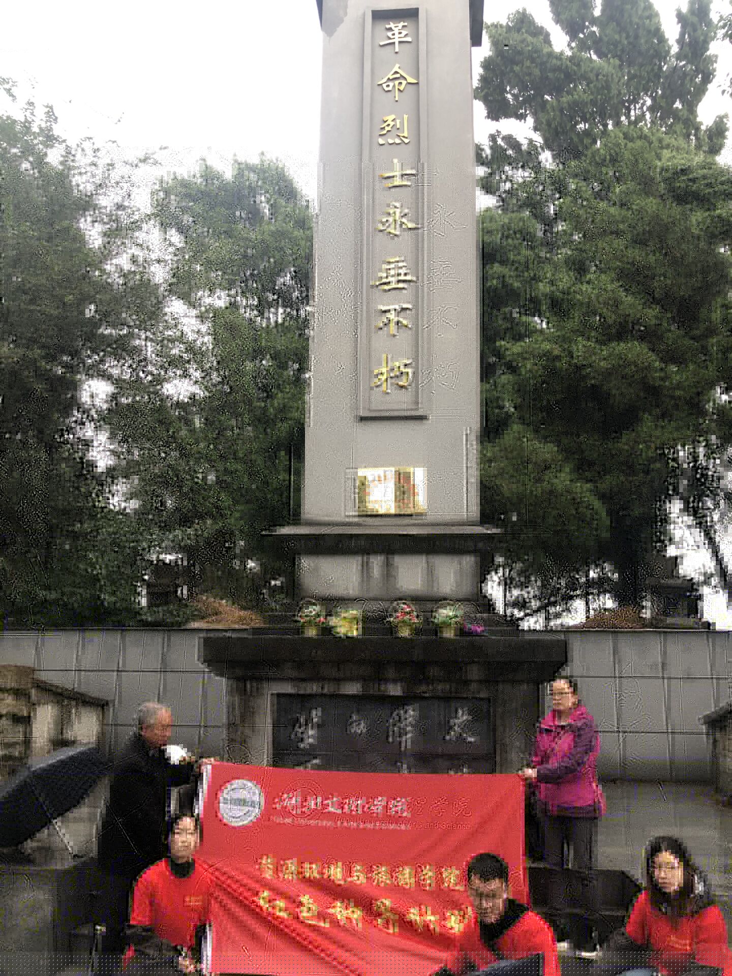 圖四:汪勝蘭老師帶隊到保康馬良鎮趙家山烈士陵園