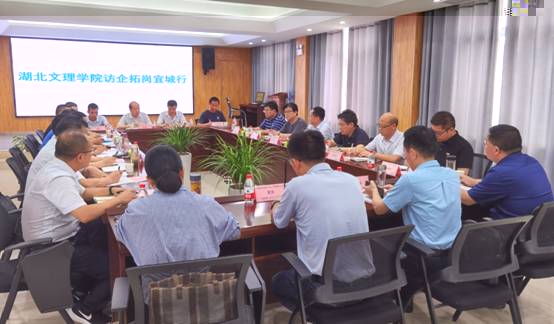 王書記一行參觀了湖北友謙汽車零部件有限公司生産車間,詳細了解了企業的運營現狀、生産規模、企業文化、用人需求等方面的情況。随後在友謙集團會議室與七家企業負責人進行了座談交流。座談會上,企業家們紛紛表達了對本科人才的需求和渴望,對學校的人才培養質量給予了肯定,并從校企深度融合的角度提出了許多寶貴的建議。湖北葛百歲葛業有限公司總經理尹為提出,希望學校建立課題式的實習模式,将企業在發展中急需解決的技術問題作為學生的畢業論文課題,讓學生帶着問題到企業一線實習,既能提升學生的專業能力,也能解決企業的實際問題,同時也能在實習中加深相互的了解和認識,為後期企業招聘人才打好基礎。