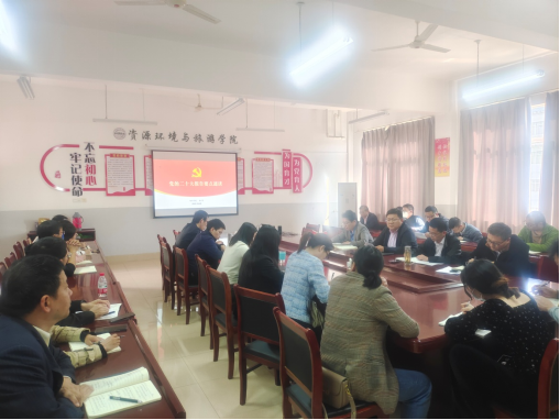 10月20日下午,資環學院在N2-331組織全院教職工集中學習中國共産黨第二十次全國代表大會上習近平總書記所作的報告,并圍繞報告進行了交流發言。會議由學院黨委書記楊霄主持。