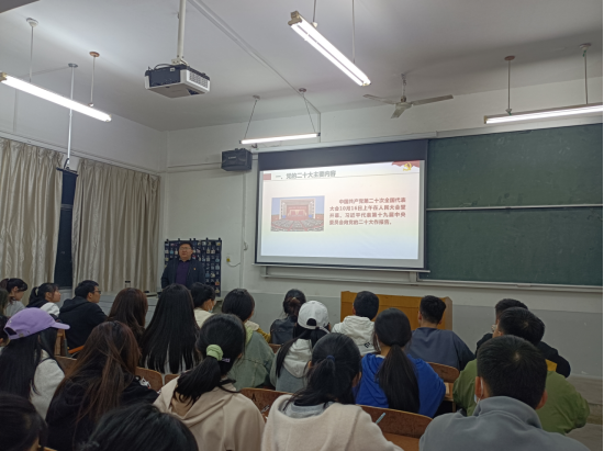 楊霄指出黨的二十大是在全黨全國各族人民邁上全面建設社會主義現代化國家的新征程、向第二個百年奮鬥目标進軍的關鍵時刻召開的一次十分重要的大會,取得了一系列事關新時代中國特色社會主義長遠發展的重大成果,是一次高舉旗幟、凝聚力量、團結奮進的大會,楊霄向同學們講述了黨的二十大報告中十五個方面的主要内容,引導同學們理解“十個明确”、“十四個堅持”“十三個方面成就”的豐富内涵,領會“六個堅持”的理論品質,并着重講述了新時代黨和國家對青年的要求和期望,希望同學們堅定信仰,做有深度的青年;懷揣夢想,做有廣度的青年;不忘初心,做有溫度的青年;敢于擔當,做有氣度的青年。