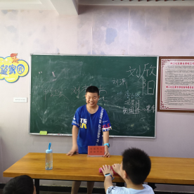 “襄穗”支教團隊剛到達社區便受到了社區負責人的熱烈歡迎,在對小朋友的情況做了初步了解和對工作進行了簡單的交接後,支教隊員便迅速的展開了工作。為了增進支教隊員與小朋友之間的相互了解,使小朋友們更好的融入課堂,支教隊員們首先為小朋友開設了一個課前介紹環節。支教隊員們先打頭陣,進行了具有特色的自我介紹并歡迎小朋友們提問,氣氛一時間活躍起來,随後小朋友們依次走上前來介紹自己的姓名與特長,小朋友們的每一個精彩演講都得到了熱烈的掌聲鼓勵。從膽怯、互相推讓到大膽自信的走上講台,小朋友們的自信與勇氣也得到了鍛煉和提升。