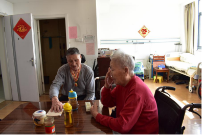 志願者在老年公寓采訪宋家錯,提到往事,妻子孫運提止不住抹眼淚