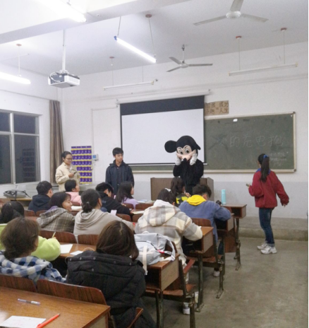 首先心健部全體成員于4棟教學樓集合後讨論活動内容,然後心健部全體成員分别進入地科2011班、旅館2011班、地科2012班,同學們熱烈歡迎。心健部部長肖閏何對同學們講解健康心理的好處和重要性,呼籲同學們積極參與活動。最後,同學們積極參與,與米奇玩偶分别開展互相擁抱、熱情握手、角色扮演、互動問答等遊戲活動。