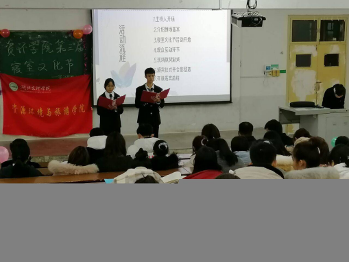 活動伊始,主持人盛重、李夢媛介紹了到場嘉賓及評委,随後各寝室代表依次上台介紹本寝室參賽作品。各寝室視頻和照片内容豐富多彩,展現了學生們積極向上的一面,活躍了現場氛圍。緊接着,展開了“生活常識”觀衆搶答環節,觀衆們踴躍舉手,積極參與,抽獎活動更是把活動氛圍推向高潮。随後,同學們還參與了遊戲環節,過程競争激烈又有趣。最後,輔導員李海老師作總結:希望同學們在寝室生活中培養良好習慣,豐富寝室生活,促進室友之間的感情,同時相互學習共同進步,共同度過美好的大學時光。