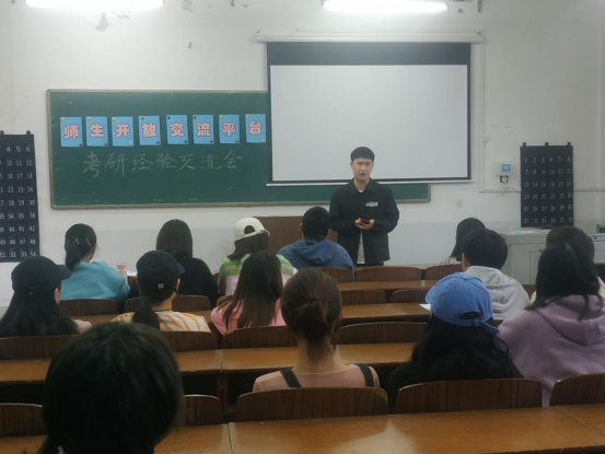 為使大家全方位、多層次、寬領域地了解考研相關信息。本次交流會在嘉賓邀請、涉及方面等都是經過精心籌劃、全面準備的。這次交流會包括備戰期間心态的調整、考研時間如何分配、如何合适的院校、如何準備跨專業考研等。在接下來的答疑環節,3位優秀師哥師姐對同學們疑惑進行了詳細解答,交流會在熱烈友好的氣氛中圓滿落幕。