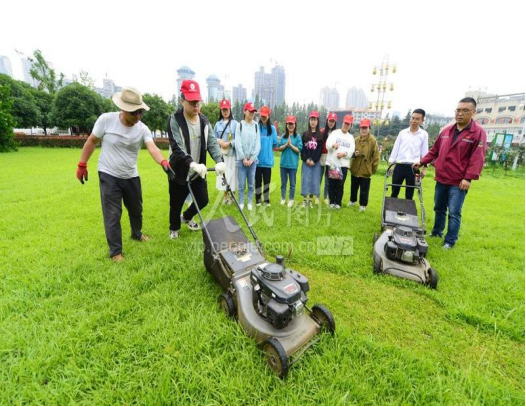 當日,襄陽市人民公園管理處聯合3044澳门永利集团欢迎您資源環境學院開展勞動實踐活動,大學生們在園藝技師的指導下學習修剪花卉,并學習操作草坪修剪車,活動旨在培養學生熱愛勞動的意識,弘揚勞動精神。