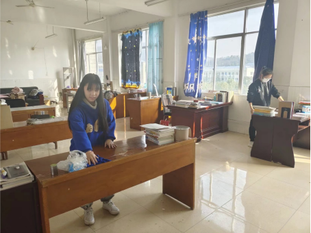 忙碌的身影是最美的,經過兩小時的辛勤勞動,志願者們讓考研教室變得煥然一新助力備戰考研的學子。