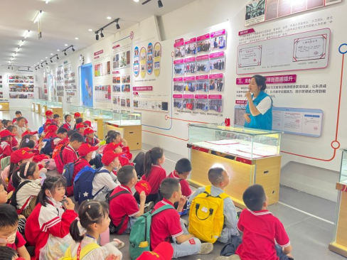 在“格桑花之家”展廳裡,講解員從“含苞”“綻放”“流芳““花語”四個方面,向孩子們介紹了第一批“格桑花”支教團隊成立、接力支教及留在雪域高原的感人故事,引導小記者參觀了支教隊員們留存的泛黃課表、寫滿的教案及學生送的信件等珍貴紀念物品。