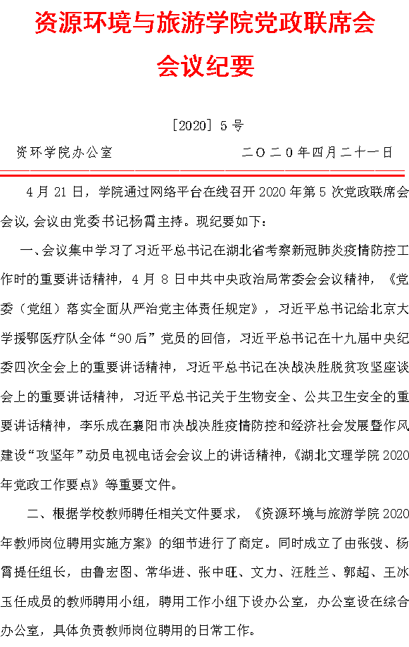 黨政聯席會會議紀要 [2020]5号