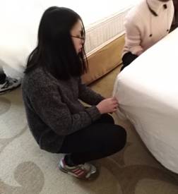 本次實訓持續兩天,共分為三個實訓内容:第一天同學們主要學習了中餐擺台、餐巾折花、宴會服務,并且實際體驗了一次婚宴服務的全過程;第二天上午進行酒店服務禮儀觀摩學習,感受民發世際大酒店的金鑰匙許經理的精彩展示;第二天下午進行客房中式鋪床的學習與操練。