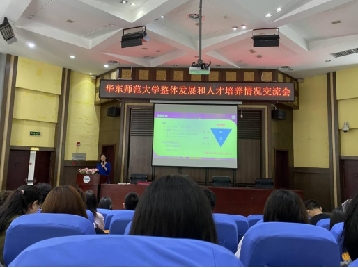 華東師範大學生态與環境科學學院黨委書記劉婕以“愛在華師大”為主題向師生介紹了華東師範大學曆史沿革、師資力量、人才培養、學科建設、學術研究等,并詳細介紹了華東師範大學地理學類的研究生招生和培養情況,支持和鼓勵有意願同學報考。