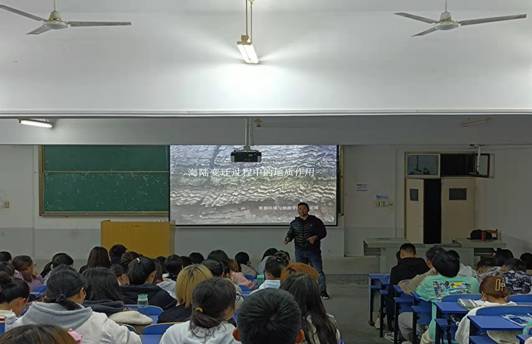 曹正琦博士以“海陸變遷 加深對地質作用的了解”為主題,向同學們講解了海陸變遷過程中的地質作用以及研究海陸變遷地質作用的應用與闆塊構造活動對人類的影響。曹博士提出了海陸變化的三個原因“海退陸進”、“填海造陸”、“地質作用”,并通過闆塊運動圖片進一步演示了海陸變化的過程,介紹了研究闆塊構造的方法。曹博士還與學生們分享了自己在烏東德水電站等地的工作經曆,通過親身經曆告誡同學們要珍惜現在的學習生活,要明确自己的人生目标,要具備吃苦耐勞的奮鬥精神,努力使自己成為一名優秀的社會主義建設者和接班人。