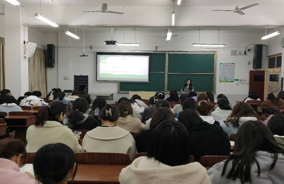 圖為:王天天博士為學生講授“加強生态文明建設,共建綠色低碳家園”講座
