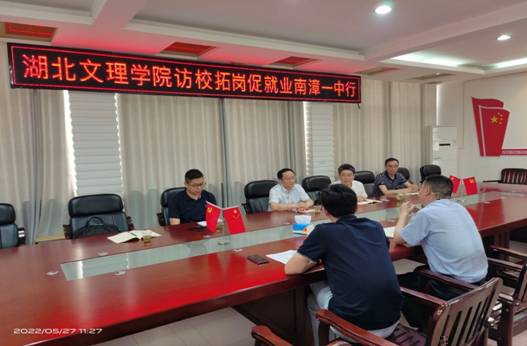 (資環學院 通訊員 鄧潔屹) 5月27日,學校黨委副書記王為一帶隊到南漳縣開展訪企拓崗活動。王書記一行先後走訪了南漳縣第一中學、南漳龍蟒磷制品有限責任公司和湖北楚天傳媒珍珠液酒業有限公司,并與學校、企業負責人進行了座談交流。